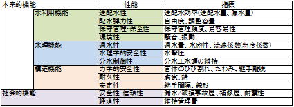 パイプラインの性能管理は、水利機能・水理機能・構造機能に加え、社会的機能の視点から
